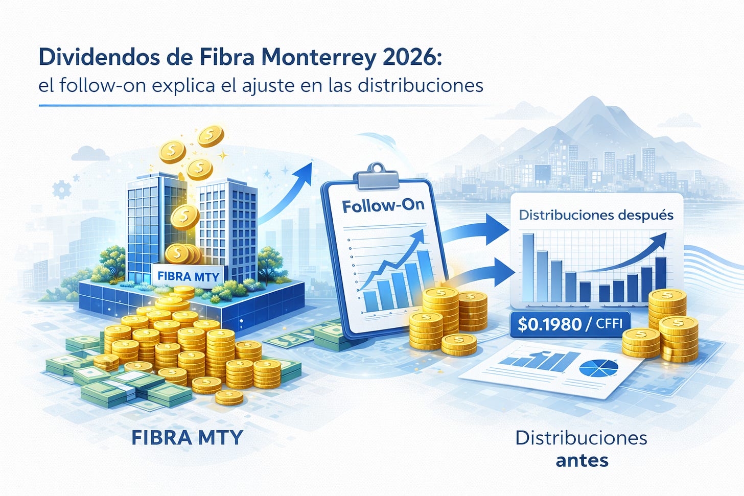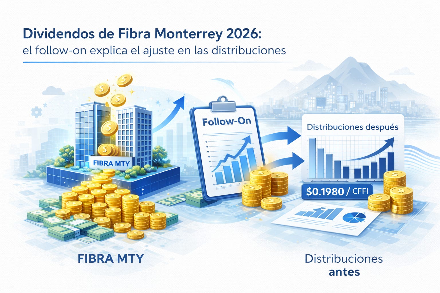 Dividendos de Fibra Monterrey 2026: el follow-on explica el ajuste en las distribuciones